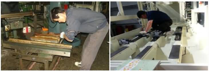 圖7: 12米龍門刨導軌劃傷,使用減摩涂層進行修復,減摩涂層固化后形成一種摩擦系數極小,而抗壓強度可達800Kg/cm 的涂層,并有效防止導軌運行中的“咬焊”現象。
