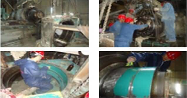 ★?后加工:固化一定時(shí)間后即可采用傳統(tǒng)的機(jī)加工方法車削、磨削、鉆孔、攻絲等,以達(dá)到要求尺寸;固化后如不需機(jī)加工,可以在施膠表面完全固化前,用手沾少量水抹平表面,以獲得光滑的外表面;加工后如發(fā)現(xiàn)表面有氣孔,要對(duì)氣孔處重新鉆孔(至少2mm深),然后重新填料(同樣要粗糙化和清潔表面)。