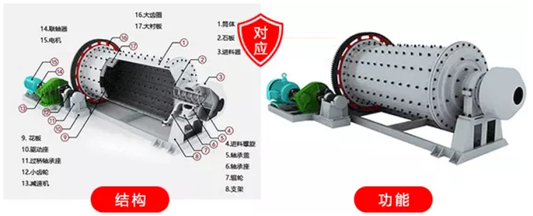 球磨機在工作時,通過電動機和減速機把扭力傳給球磨機的大小齒輪,從而使球磨機筒體轉動,由于球磨機筒體的轉動與筒體襯板共同作用將一部分鋼球(或其他研磨介質)帶升到一定高度,進行自由墜落運動產生沖擊力,撞擊筒體內的物料,其余部分鋼球進行瀉落運動產生摩擦力和物料混在一起隨著筒體的轉動不停的與物料進行碰撞和研磨。磨碎后的物料通過空心軸頸排出。